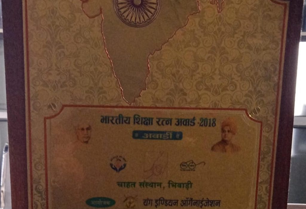 Presented by chahat NGO, Bhiwadi, For inspiring next generation with their work as a leader.